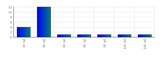 Midtdjurs og omegn, der er 25 lejligheder til leje. Lejlighedernes størelse fordeler sig som vist på grafiken. Se alle lejlighederne her.